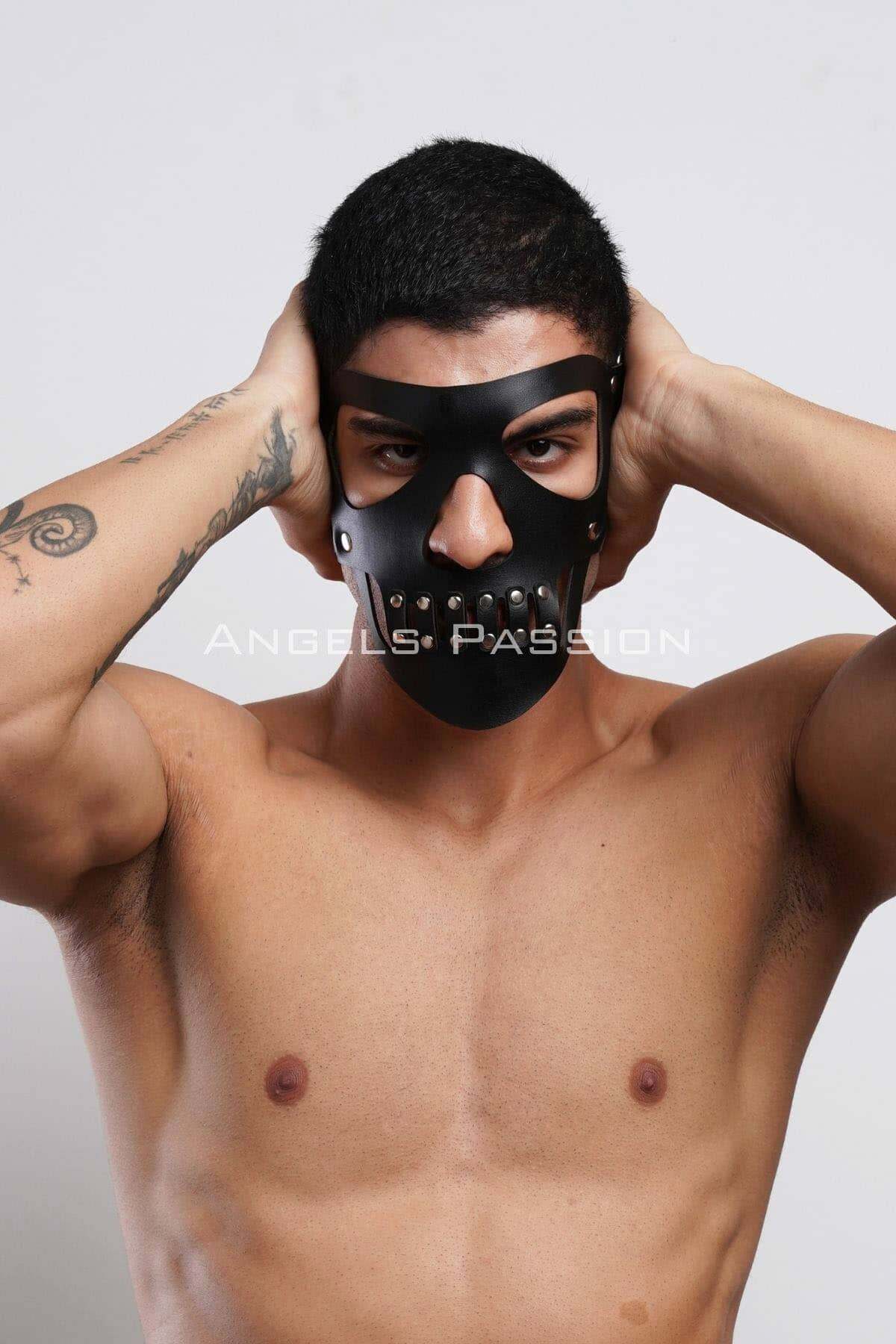 Masculine Leather Mask for Men, Stylish Costume Accessory for Parties and Events, Unique Gift